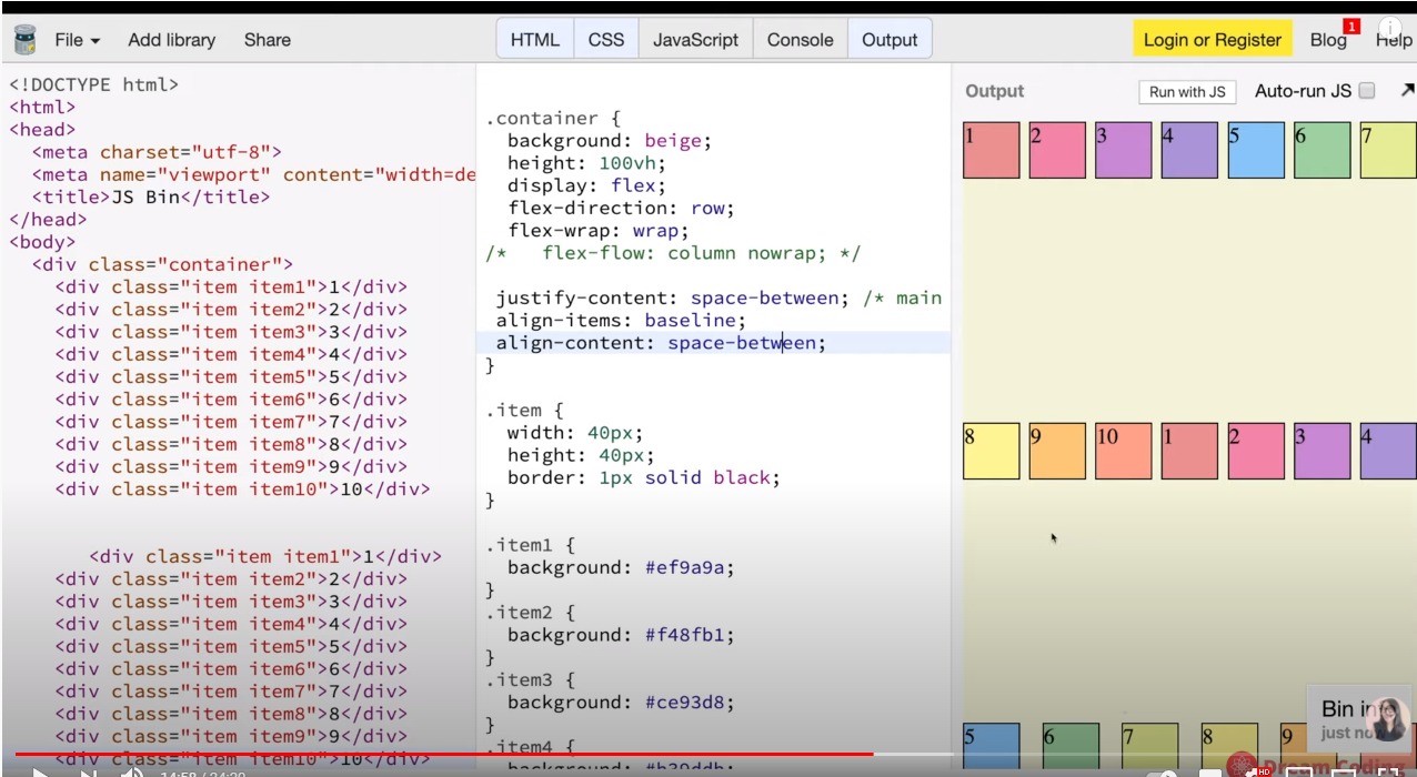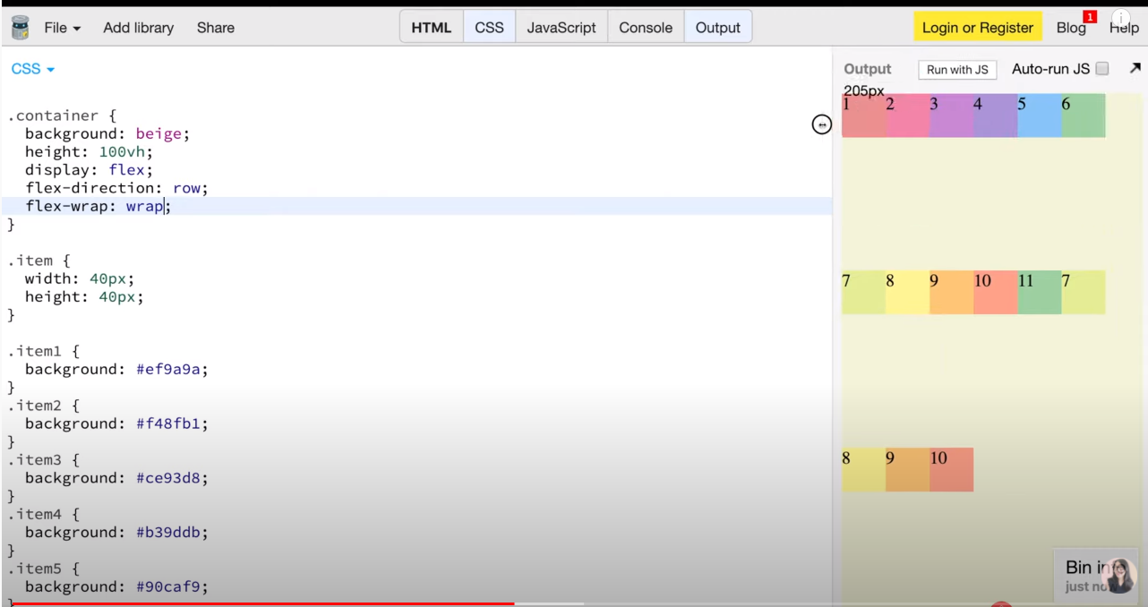 flex-wrap:wrap; 아이템들이 한줄에 꽉차게 되면 다음 라인으로 넘어가게 된다.