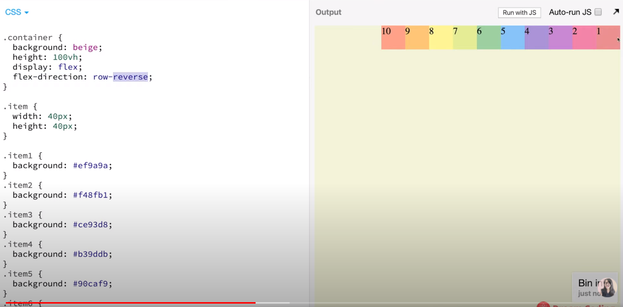 justify-content:flex-end 순서는 유지하되 오른쪽 축으로 정렬